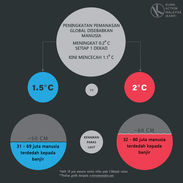 Kenaikan suhu global! Kenaikan suhu 1.5 °C dan ke atas akan membawa kepada pemanasan laut, pencairan glasier, kenaikan paras laut dan iklim yang melampau dan tidak menentu.